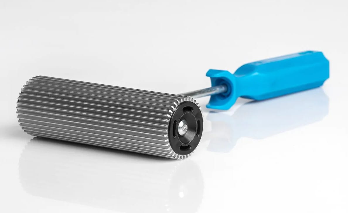 Wałek aluminiowy, radiator, nacinany wzdłuż do głównej osi.